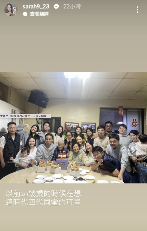 不過早前余文樂到日本遊玩,而太太王棠云則留在台灣與家人相聚,她在社交平台上上載了限時動態,相中有老有嫩,人數更超過20人,單單是小朋友已經有10個以上。她寫道「以前20幾歲的時候在想,這時代四代同堂的可貴」、「結果這裡全是第四代,好感人」,而從「四代人」中,有兩位小朋友疑似是余文樂王棠云的小孩,數年來小心翼翼的兩老婆在全家福中洩密!