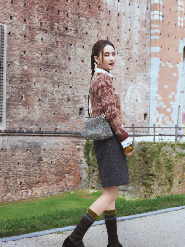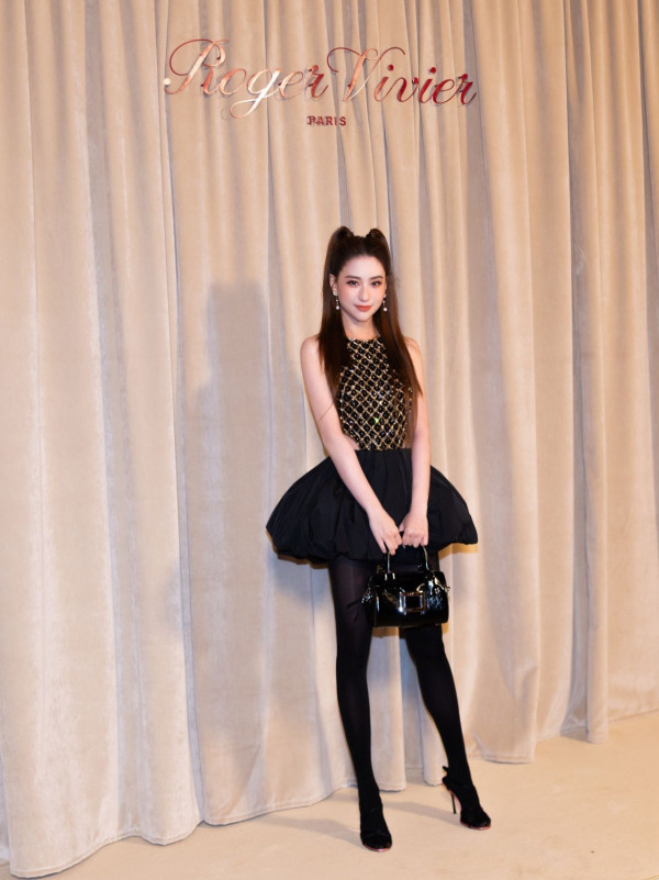 何超蓮一向鍾情於Roger Vivier,連婚鞋也是由品牌設計總監Gherardo Felloni親自為她打造。何超蓮今次以一身黑金格紋上衣搭配黑色泡泡裙,並以雙馬尾造型亮相。今次何超蓮和Yeji極罕同場Roger Vivier2026新品預覽會震驚不少網民!