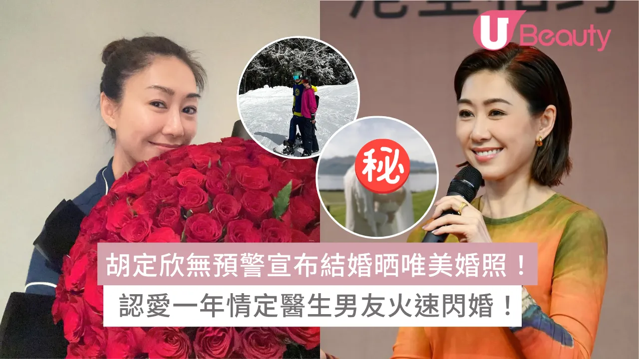 現年43歲的胡定欣,入行多年,感情生活不算豐富,曾與幾位男星傳出緋聞,但戀情都未能開花結果。單身9年的她,去年元宵節驚喜宣布拍拖,公開與醫生男友Akin的甜蜜合照!拍拖逾一年半的兩人,今日無預警宣布喜訊,正式成為夫妻!