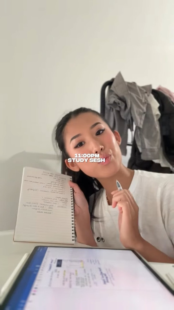 到傍晚提早用餐後就進入教室等待上課,課程直到深夜十一點才結束,但Natalie返宿後仍會繼續複習與整理筆記至凌晨一點,最後才完成護膚入睡。雖身處繁華紐約,她沒有沉迷派對,而是選擇嚴格自律,把重心全放在學業目標上。