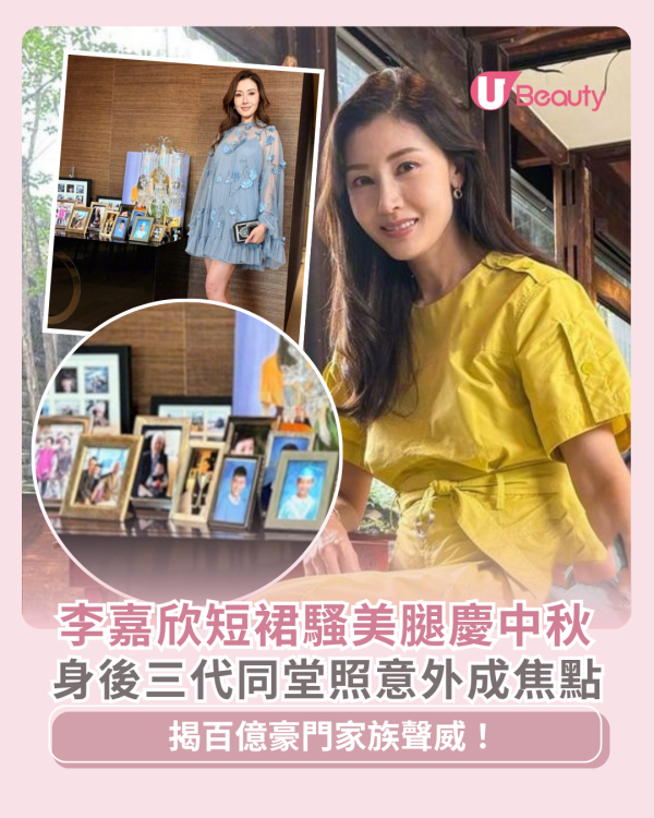 現年55歲的「大美人」李嘉欣在1988年奪得香港小姐冠軍,多年來一直以神級美貌成為無節匹敵的「最美港姐」,自2008年與富商許晉亨結婚,更榮升豪門闊太,升呢上流名媛。但她亦不時會在社交平台分享生活近況,日前適逢中秋佳節她就貼出靚相賀一賀,更罕有曝光了身後的三代同堂照片!