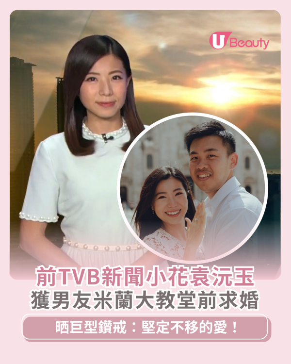 現年30歲的袁沅玉曾是TVB高級主播和專題組記者,憑藉可愛容貌及清晰口條,在觀眾心目中留下深刻印象。不過在2023年她就已經離開TVB,成為市場推廣及公關以及香港電台第五台《香江暖流》電台節目主持。而日前她就在IG宣佈獲男友求婚喜訊,榮升準人妻!