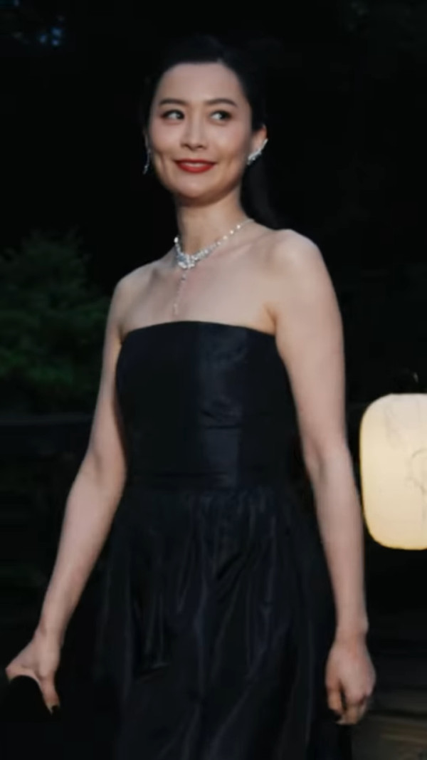 一身華麗打扮的陳法拉在紅地毯上,以一身黑金色拖尾低胸長裙現身,簡單配上一對寶石耳環,加上而盤髮造型顯得利落大方,氣質從容。而這一身晚裝裙就因為裙尾太長讓法拉每一步都需小心行走,身旁的工作人員更貼身協助整理裙擺,場面顯得隆重又華美。