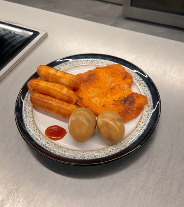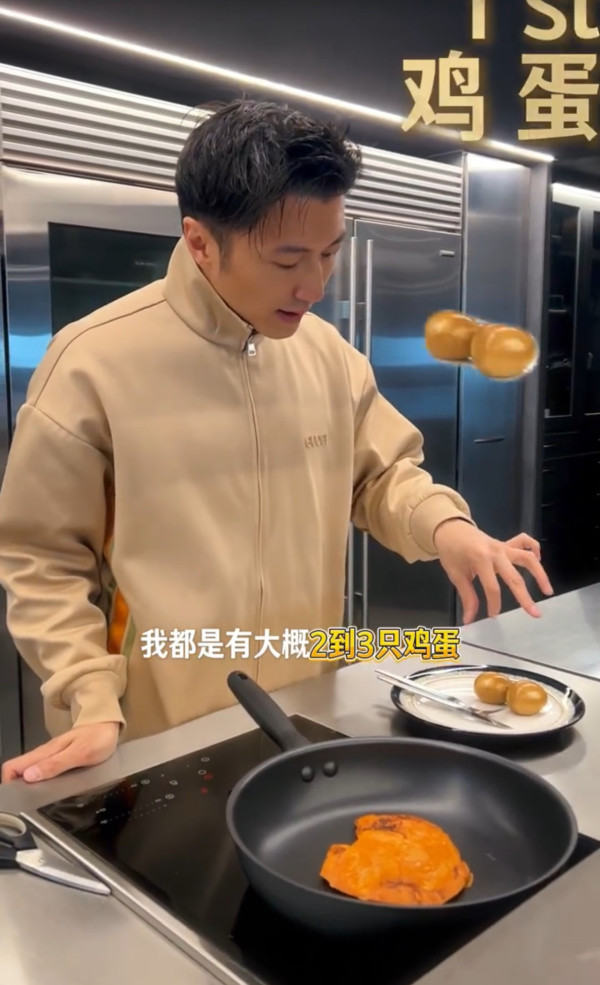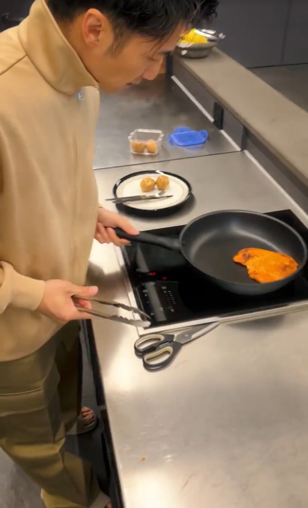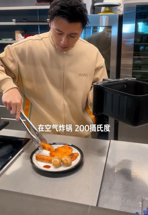 在高蛋白日,他的餐點力求簡單、營養且低負擔。具體例子包括每天吃2至3顆茶葉蛋,選用無需放油即可煎製的雞胸肉,再加上他自家品牌「鋒味派」出品、用氣炸鍋加熱的蝦肉腸。這些選擇不僅提供了優質蛋白質,烹調方式也極力避免額外油脂,符合減脂需求