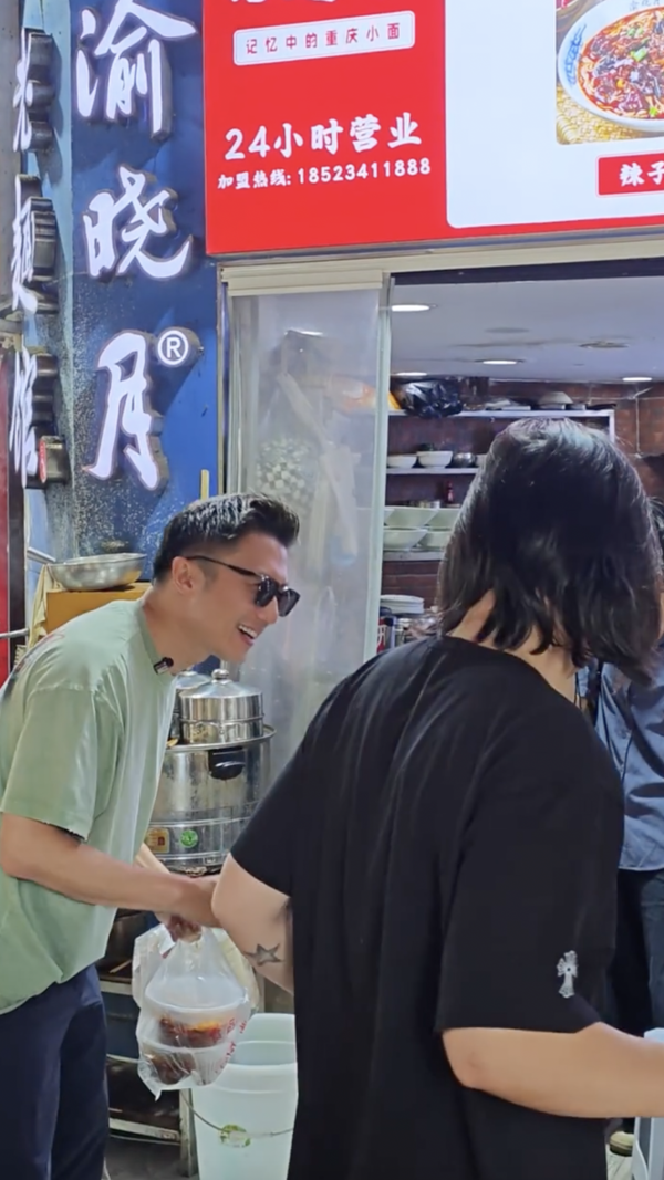 謝霆鋒早前剛完成重慶舉行的兩場演唱會,隨後他就到訪當地小店品嚐美食。有網民在一家平民麵店意外捕獲他,並將片段發佈到社交平台。影片中,謝霆鋒身穿簡約悠閒的淺綠色上衣,搭配牛仔褲,打扮低調又樸素。他與團隊在店內用餐,離開時亦打包了兩碗麵帶走,遇到粉絲時也不忘打招呼及拍照,展現出隨和、親民的一面!
