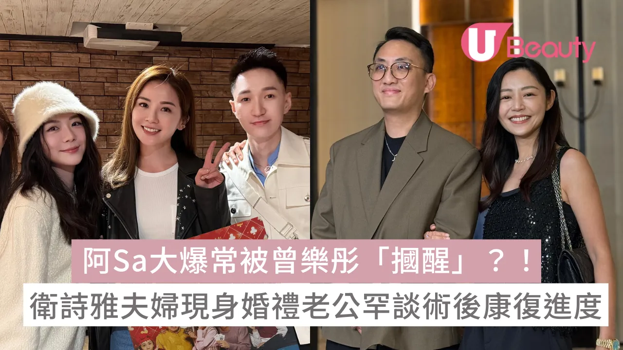 前英皇小花「金牌音樂監製」徐浩與歌手曾樂彤昨日(12日)舉行婚宴,廣邀圈中好友到場,星光熠熠,包括蔡卓妍(阿Sa)、吳千語、衛詩雅及老公周祉安等,場面非常熱鬧。身為新娘好友的阿Sa亦有在受訪時大爆因一事被新娘「大巴摑醒」!衛詩雅夫婦亦恩愛到場,早前因手術引發併發症的周祉安更親報康復進度。