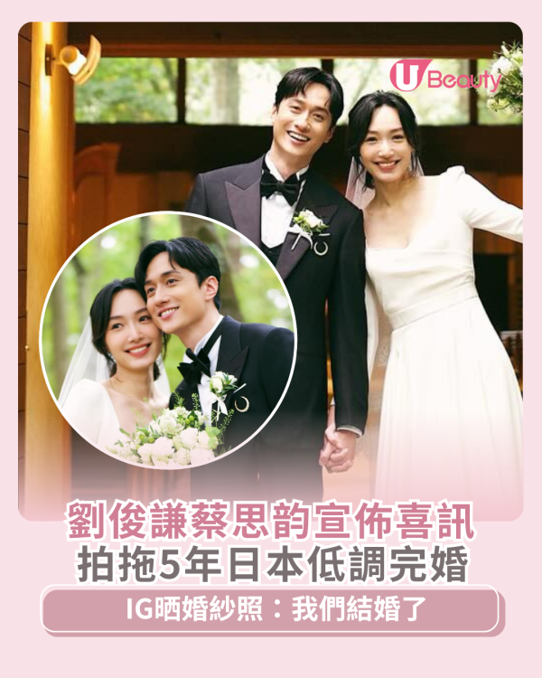 蔡思韵因與劉俊謙合演《幻愛》,而戲假情真,戲裹戲外都成為情侶,而今年二人已經拍拖5年,不時都會公開放閃。而今日(14)二人在社交平台宣佈結婚喜訊,在日本完成婚禮正式結為夫妻!
