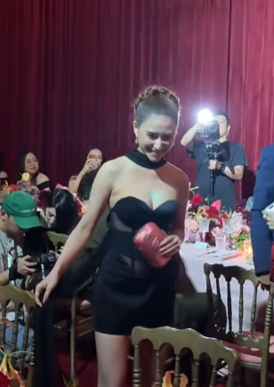 何超蓮在品牌活動中以一身深V露背金色裙的性感造型出席活動,優雅又大方,發放粉絲福利。不過吸引網民們眼球的,還是超蓮豐滿的上圍盡現眼前,超深的事業線一覽無遺,大方展現白皙雙臂及光滑皮膚,加上零贅肉完美身形比例,姣好身材讓眾人稱羨不已。