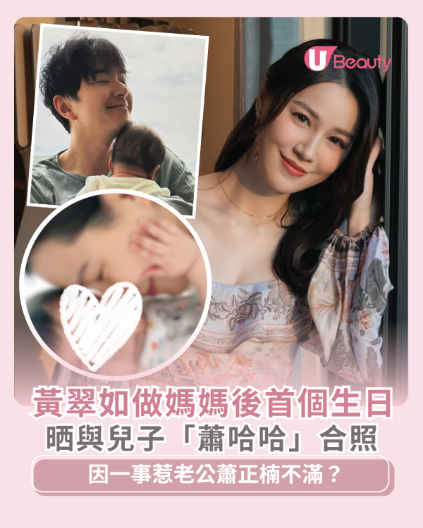 藝人黃翠如於2018年與蕭正楠結婚,結婚近8年二人在今年3月迎來兒子「蕭哈哈」,組成一家三口,生活幸福。而近日是黃翠如的44歲生日,亦是她正式榮升為新手媽媽後的第一個生日,她亦在社交平台發文慶祝特別的日子,不過竟一事惹老公蕭正楠不滿?