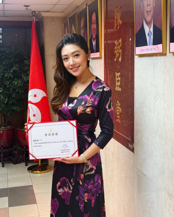 最近廖倬竩又有新發展,她在IG上傳加入潮陽同鄉會的相片,正式成為會員之一,她更寫著「要多謝我爸爸引薦我入會,有機會回饋返我哋家鄉。」,相中她捧著潮陽同鄉會的會員證書,而她一身紫黑色印花連身裙穿搭就更為搶鏡,造型似乎略顯俗氣,加上一頭側梳All Back 長髮,加添一份成熟韻味,看起來不像只有31歲,「大媽味」甚濃!