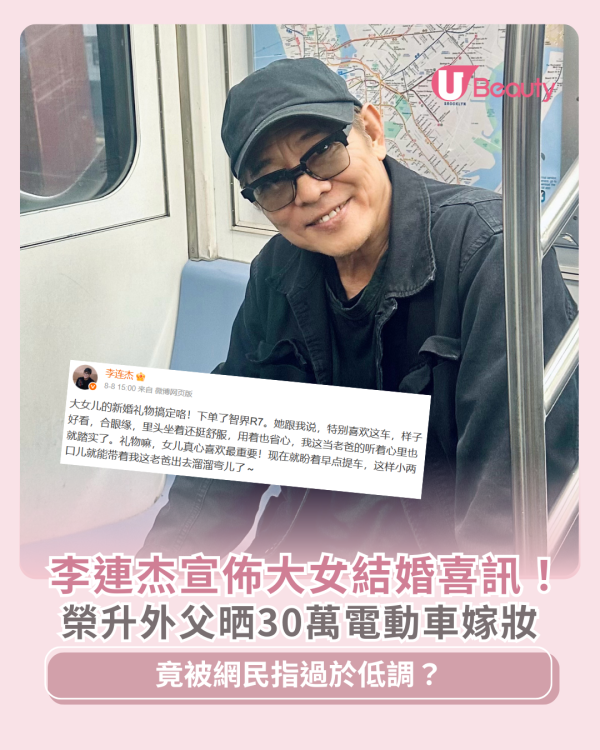 李連杰宣佈大女結婚喜訊!榮升外父晒30萬電動車嫁妝!竟被網民指過於低調?