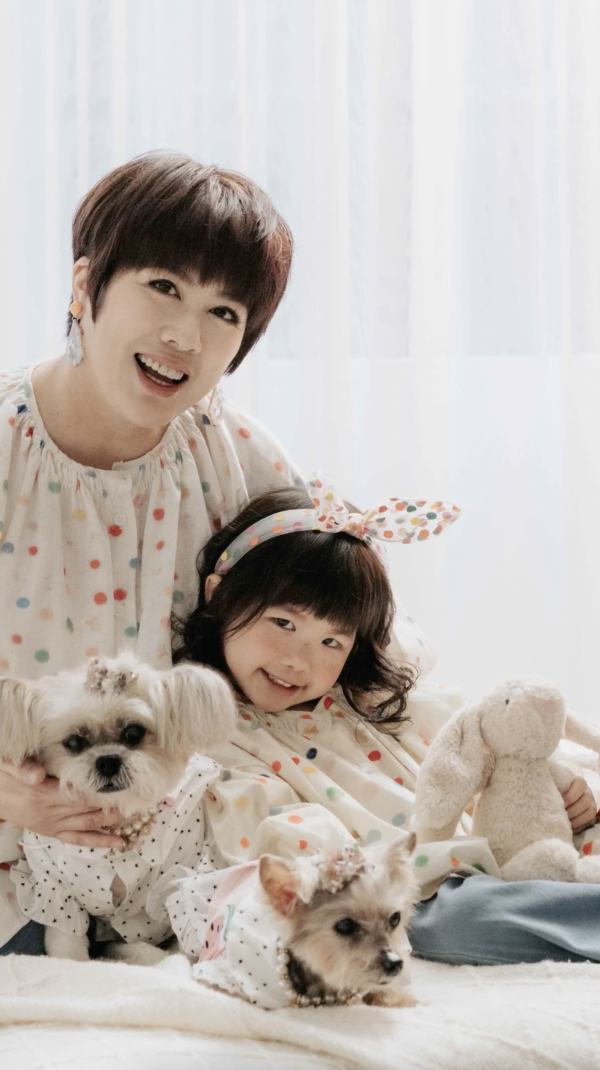 片中可見,陳彥行帶同媽媽、Paris及兩隻愛犬到影樓拍攝全家福,陳彥行與Paris換上母女裝,兩人先穿著黑色上衣與牛仔褲的造型,兩人溫馨互望的畫面極為幸福,Paris笑起來的樣子與陳彥行幾乎一樣!其後她們又換上印有彩色波點的白色上衣拍照,表情多多的Paris,除了大擺Pose外,又甜蜜地親吻陳彥行的臉龐,洋溢著歡樂美滿的氛圍!陳彥行與媽媽及囡囡同樣留有齊陰短髮,一家人似足餅印!