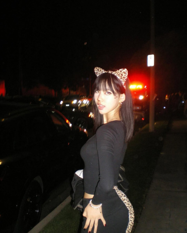 擁有時尚觸角的Elly身穿黑色羽毛平口上衣,下身搭襯黑色短裙,加上黑色皮革西裝外套和同色系靴子,性感超齡造型再加上天生厭世表情,被讚時髦感不輸媽媽。另外,Elly的姣好身材亦成為焦點,只見她完美遺傳媽媽的超強基因,完美直角肩和白皙長腿一覽無遺,內外都甚有星味。