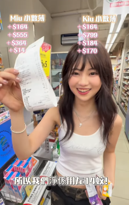 近日,區明妙與好友拍攝了一條日常記錄片段,記錄她們一天的開支。片段中,她們到訪餐廳、藥房和大型連鎖店,但網民的焦點卻落在區明妙的衣著上。當日,她穿著白色小背心,搭配迷彩軍裝褲,性感型格,又不失青春活力,小背心亦隱隱約約展現她的好身材,獲得網民大讚「好睇!❤️😗」。