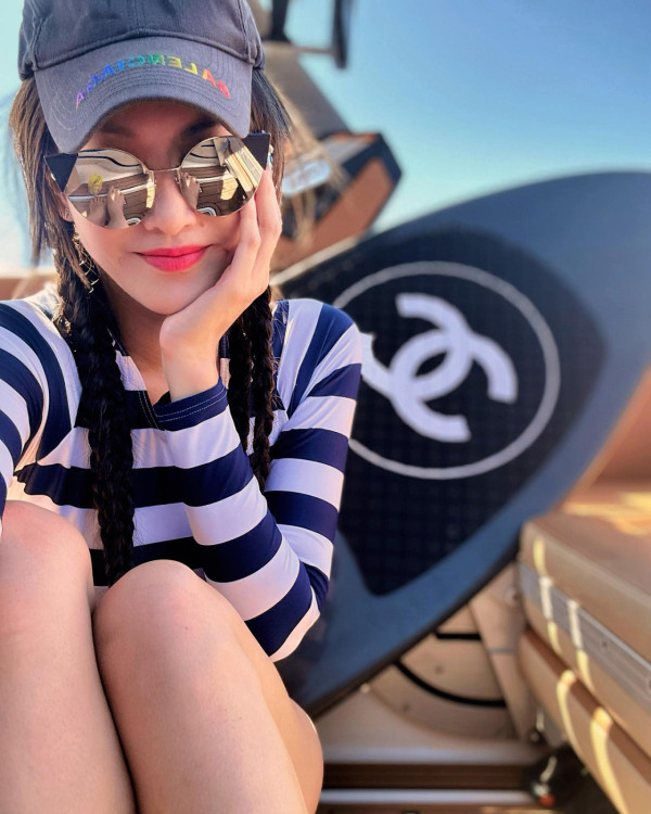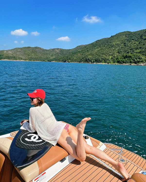 除了泳衣照吸睛之外,相中的另一亮點就是CHANEL衝浪板,這款黑色的衝浪板價格高達$56,500港幣,完美地突顯她富婆風範。據指現時她亦持有12個物業,遍佈香港、澳洲、英國、泰國等地,市值過億。