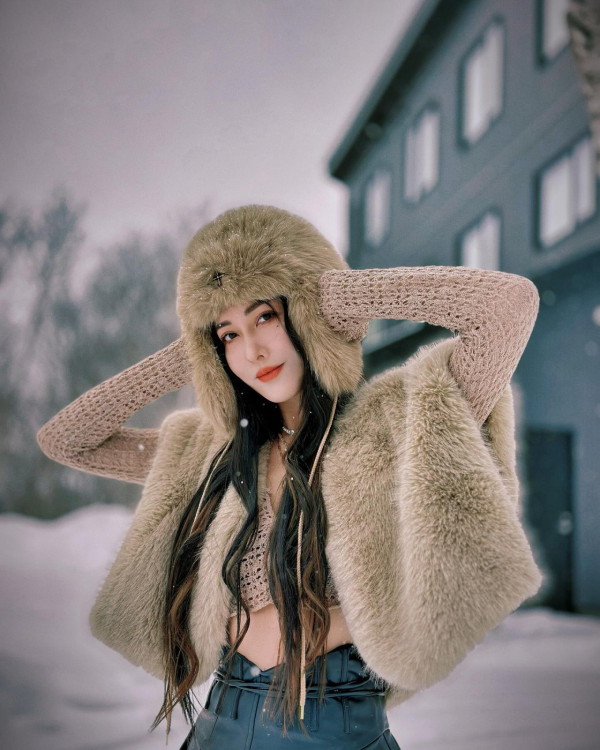 李彩華在IG分享在日本旅遊的相片,相中她穿著粉紅色心心吊帶Bra Top,外搭白色皮草及紅色高踭鞋,並在雪地擺Pose打卡,當中高炒視覺將李彩華的上圍顯得更澎湃,她火辣的線條讓網民留言「血已流😆」,不過李彩華就搞笑地話「真係多謝呢位朋友幫我影到我身材咁玲瓏浮凸,所以話新嘅一年隨時咩都有機會發生 🤣🤣🤣🤣」。