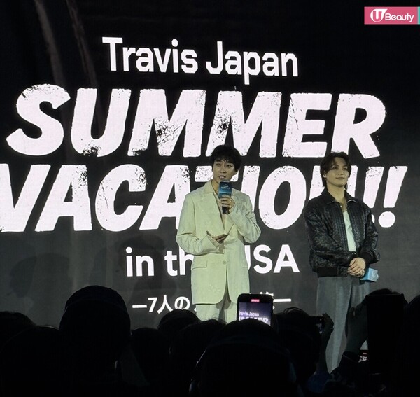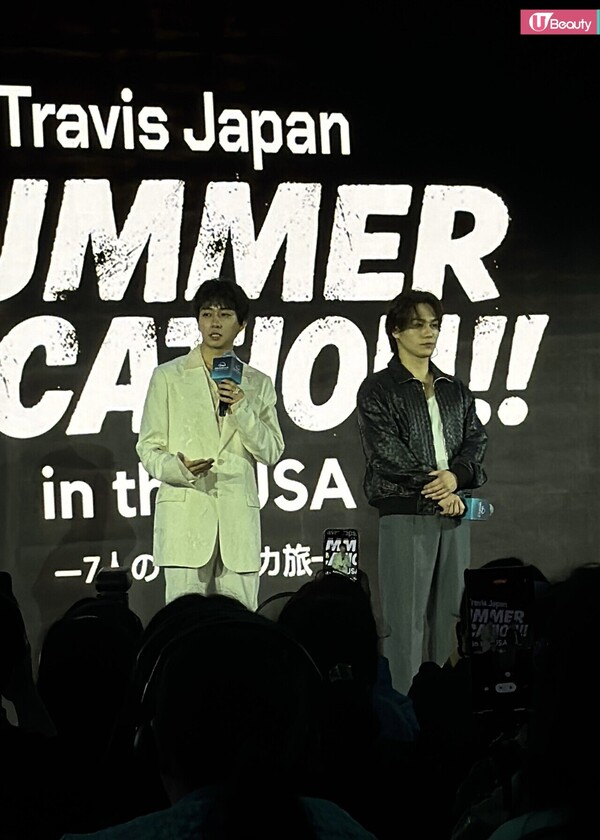 日本男子組合Travis中的2位成員兩位成員松田元太與中村海人亦有特意來港出席節目巡禮,宣傳全新節目《Travis Japan 到美國放暑假》,兩人分別穿著白色正裝與黑色皮革外套造型,簡約而不失時尚活力,非常搶眼!