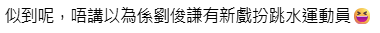 這場「撞樣」旋風,始於社交平台Threads上的一則搞笑發文:「有無人諗過平衡宇宙嘅自己會做啲咩?劉俊謙就去咗跳水。」由於相似度高得驚人,不少人笑稱:「唔止似,直頭一樣樣咁」、「我第一眼以為係AI P圖」、「劉俊謙種族崛起」、「爭啲想tag劉俊謙問佢係咪有失散兄弟」。更為巧合的是,劉俊謙本人自小也懷有運動員夢,小學時更曾是游泳校隊成員。事實上,這已非劉俊謙首次因「撞樣」成為熱話。早前他便一直被指與台灣男演員范少勳樣貌極為相似,兩人更因此結緣,一同合作拍攝電影《我在這裡等你》,當時亦成為城中熱話。沒想到事隔不久,劉俊謙的「撞樣」版圖已從台灣演藝圈「擴展」至內地體育界,難怪網民笑稱「劉俊謙種族」正不斷崛起。