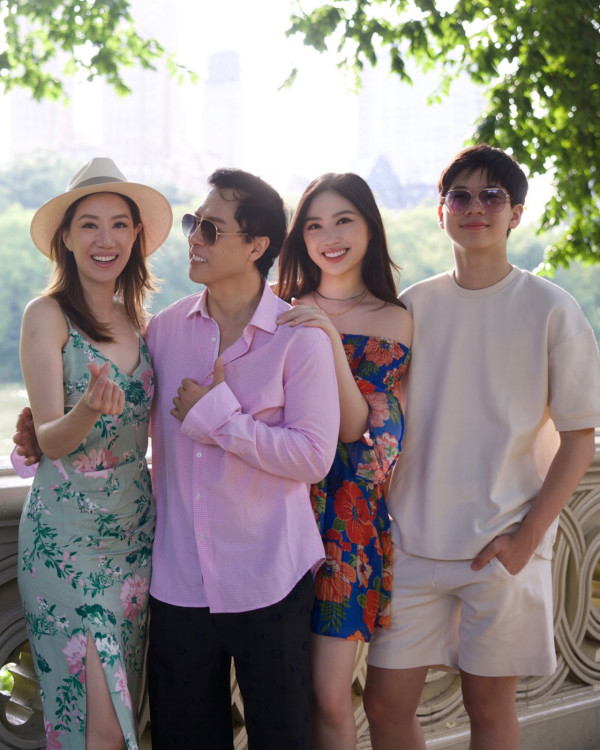 甄子丹大晒與家人在雲南大理度假的全家福,相中可見一家四口穿上藍白色為主的套裝,甄子丹身穿淺藍色西裝,太太汪詩詩穿上的白色花花長裙,兩人除了盡顯凍齡美貌,更牽手在山野間漫步,恩愛萬分羨煞旁人!