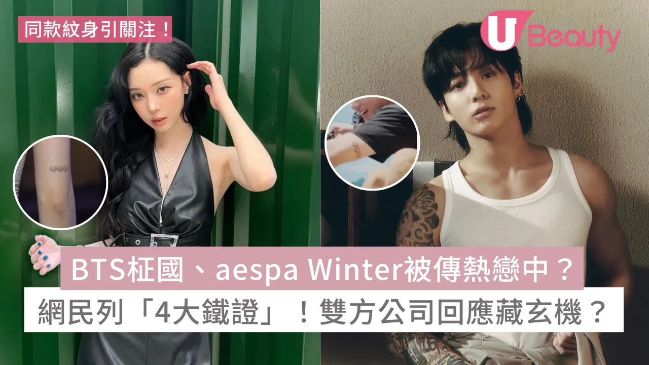 最近有網民整理出BTS柾國疑與aespa Winter談戀愛的證據,網民指兩人近期常配戴同款配飾,如帽子、戒指、手鍊及入耳式耳機等等,另外,兩人在手臂後都刺上狗狗紋身,顏色與大小都近乎一樣,似乎非單純的巧合。其後,有其他網民表示柾國在當兵期間,曾觀看aespa演唱會,網民更強調柾國從未到場支持旗下公司的女團。最讓人震驚的是,網民貼出Winter「站姐」(應援會負責人)的對話記錄,從訊息可見,女方的粉絲疑似早已得知戀情,「證據確鑿」讓這段戀情更加引起關注。