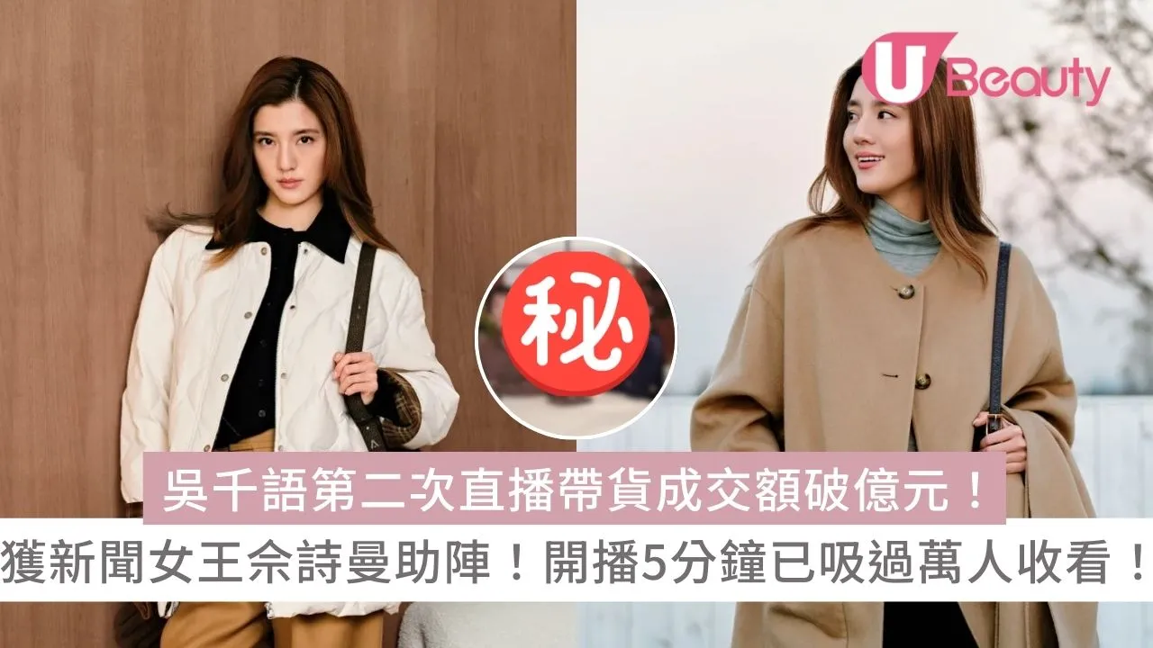 現年 32 歲的吳千語自從與「百億富三代」施伯雄註冊結婚後,便逐漸淡出銀幕,只有間中拍攝網絡劇,並將重心轉向社交平台的直播帶貨領域。她在商業方面展現出驚人潛力,早前(9月)的帶貨直播中,生意額已高達 6 千萬。近日,吳千語再次舉行直播,並請來老公施伯雄、馬天佑、內地演員程曉玥、佘詩曼等眾多明星好友攜手帶貨,直播間人氣高企,生意額更直接破億元,證明她不只是娛樂圈女神,更是商界帶貨女王!