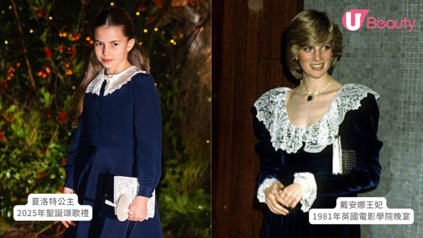 當日夏洛特公主的衣著和舉止就引起不少網民熱議,她身穿深藍天鵝絨與蕾絲領洋裝,造型優雅端莊,與1981年時已故戴安娜王妃參加英國電影學院晚宴的服飾極為相似,有網民翻找更多夏洛特公主與戴安娜王妃的相片,更發現兩人散發著相同的氣場,神韻、氣質以及眼神都有著嫲嫲的影子,大方又得體。