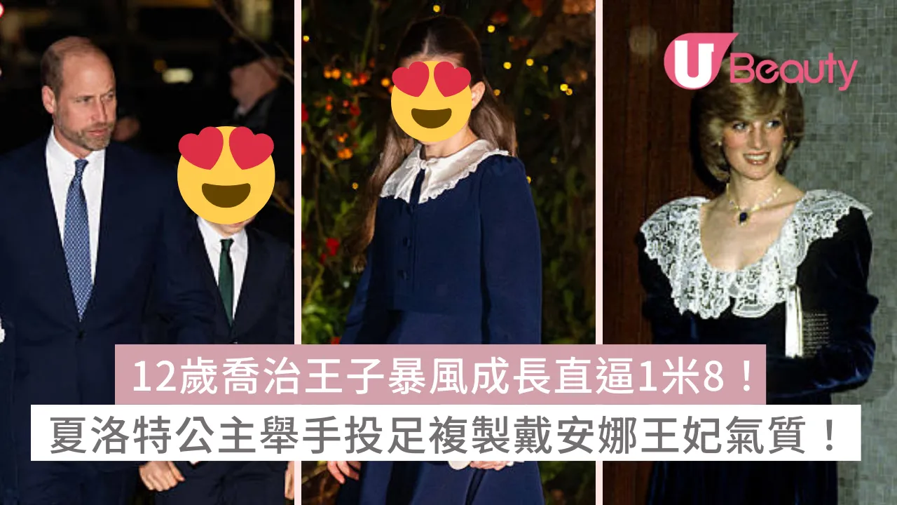 英國王室的成員向來是全球焦點,而威廉王子與凱特王妃的三位子女更是備受矚目。早前英國王室在舉行年度聖誕頌歌禮,威廉王子、凱特王妃與3名子女一同現身,其中喬治王子暴風式成長,展現出未來國王的氣派!不少網民更留意到夏洛特公主的衣著、氣場甚至舉手投足間的優雅美感,都極有嫲嫲戴安娜王妃的影子!