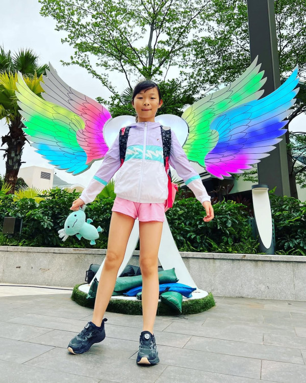 早前,湯盈盈在IG上傳一段一家四口觀看熊貓的片段,四人同樣身穿黑白的服飾,與大熊貓合照時非常合襯!片中可見,12歲的大女Alyssa明顯長高不少,與媽媽湯盈盈近乎一樣高,樣子似足爸爸錢嘉樂的Alyssa,同樣擁有一雙丹鳳眼,具魅力之外,亦散發著少女味!