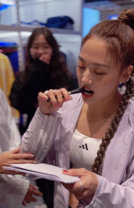 從網上片段見到當日以俐落造型現身的迪麗熱巴準備離開錄影現場,與助手走到保母車前,嘴角就咬住朱古力棒零食,畫面讓不少網民聯想起韓韶禧「咬筆蓋」,留言指迪麗熱巴根本是在模仿對方,但又不想顯得太刻意才改咬零食。