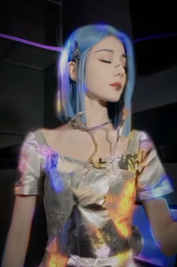 迪麗熱巴早前公開拍攝內地綜藝節目《開始推理吧》第二季的全新「機器人女友」造型,她以冷酷的藍色頭髮示人,穿上反光銀色連身短裙,完美演繹出機械美感,讓人彷彿置身於未來世界。特殊的金屬裝飾在她的臉上呈現出機械感,而機械式的眼神與動作更是令粉絲們印象深刻,完美展現出不同於以往的迪麗熱巴。整個造型充滿了科技感。不但讓她的皮膚看起來更加白哲,深邃的五官也更加突出,引發了網民熱議!