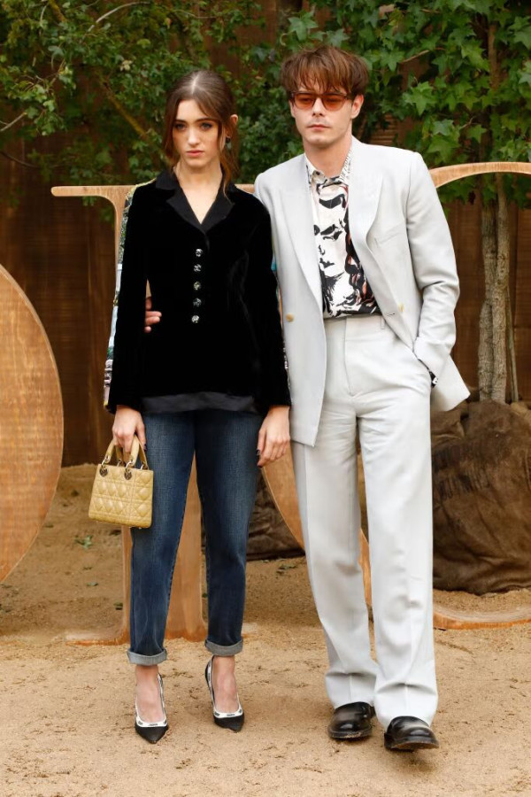 當然,提到這部劇的戀情,我們不能忘記這一切的起點——Natalia Dyer 和 Charlie Heaton。這對備受喜愛的時尚情侶檔,自 2016 年第一季開拍以來就傳出緋聞。從最初的機場同框、巴黎街頭牽手,到後來大方出席各大紅毯與時裝週(包括最近的 Burberry 倫敦大秀與巴黎時裝週),他們的感情已經穩定長跑了近九年。