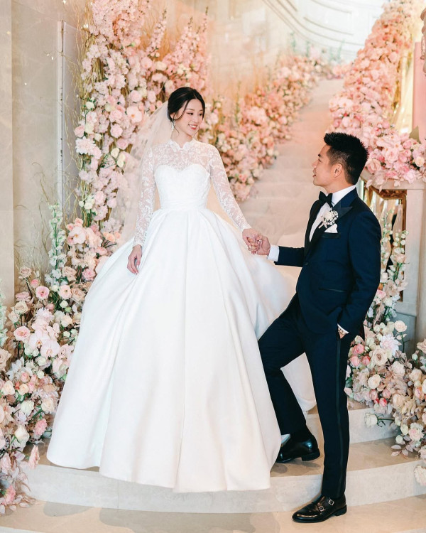 江鈺琪(Yuki),貴為「燈芯絨大王」千金,在2022年下嫁「莎莎太子爺」郭浩泉(Patrick),2024年5月更榮升做新手父母平安誕下仔仔。適逢是二人結婚2週年紀念,Yuki亦首度公開當年婚禮的絕密片段,富貴程度超級誇張!在Yuki曝光的片段中所見,先在過大禮當日接近有50份大型賀禮在家中一字排開,場面極奢華。婚禮當日同樣星光熠熠,當時擔任二人的兄弟姊妹團幾乎都是「重量級」身家,包括有已故賭王何鴻燊之子何猷亨、林建岳千金林心兒等。晚上再於灣仔會展舉行婚宴,Yuki在萬千粉紅花卉下出嫁,猶如置身花海一樣。緊接換上中式裙褂,Yuki頸上和手上掛滿接近廿對巨型龍鳳鈪,金器大晒冷盡顯豪門氣派。