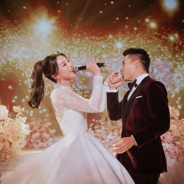 其實在老公Patrick在2021年向Yuki求婚當日,已非常讓人稱羨。當時Patrick在價值10億的獨立屋,面向180度無敵大海景,佈置一片粉紅色花海,下跪向Yuki送上求婚戒指。當Yuki點頭答應結婚的一刻,馬上有煙花發射,場面非常浪漫。當時現場亦有樂隊伴奏,Yuki更與爸爸一齊唱歌!