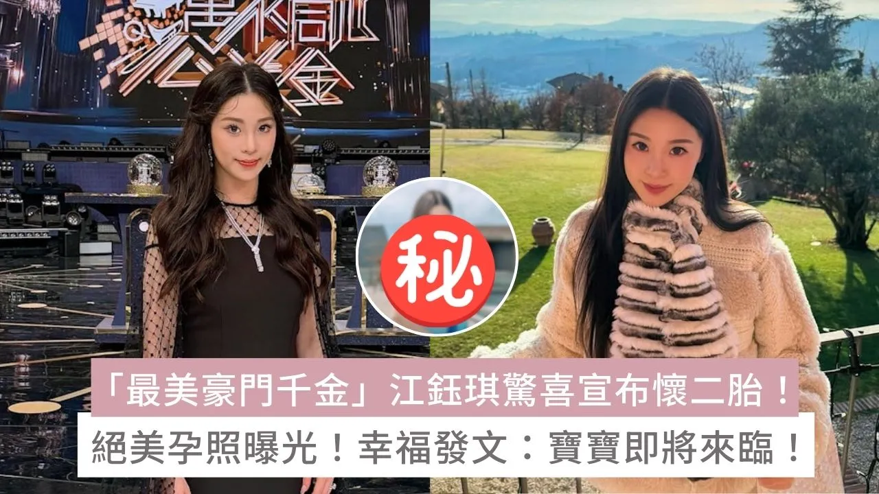 現年29歲「百億千金」江鈺琪,為「燈芯絨大王」江達可的女兒,更因外貌出眾而被譽為「最美公益金主席」。 2022年,她與「莎莎太子爺」郭浩泉結婚,婚後定居於過億港元的單棟式豪宅,並在2024年初誕下長子Aden。日前,她驚喜宣佈懷上第二胎,並分享多張絕美孕照,因孕期依然維持纖細四肢與滿滿少女感,被網民盛讚為「最美孕婦」。