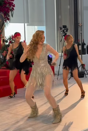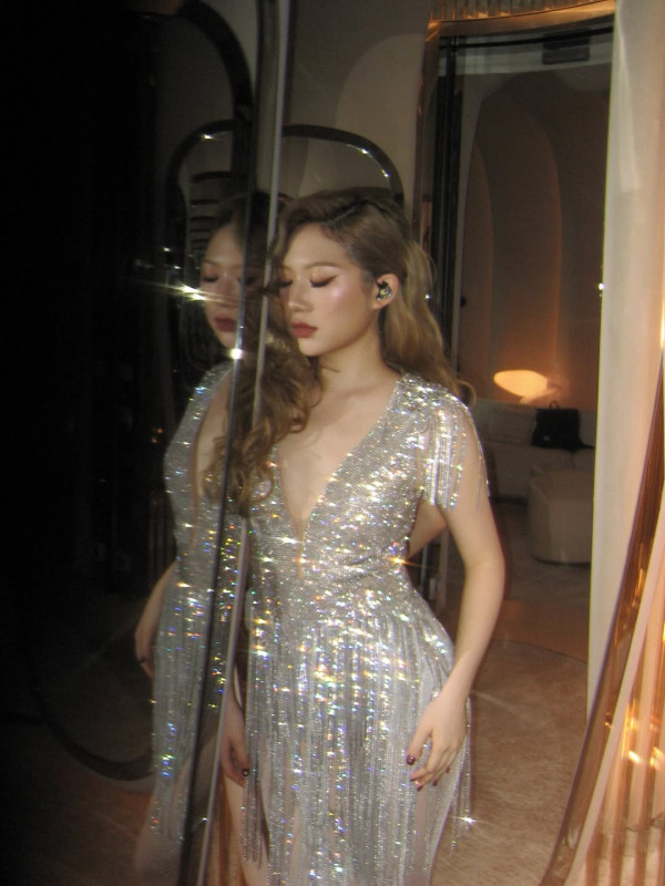 近日,甄濟如在社交平台分享了一段震撼眼球的表演片段。當晚,她換上一頭耀眼大波浪金髮,搭配極具視覺衝擊力的銀色貼身 Deep V 流蘇裙,造型狂野又性感,出眾的身材表露無遺。面對台下近百位的賓客以及坐在正前方的父母甄子丹與汪詩詩,Jasmine 依然展現出大將之風,演出過程中毫不害羞、全情投入,舉手投足間盡顯歌手的熱情與自信。