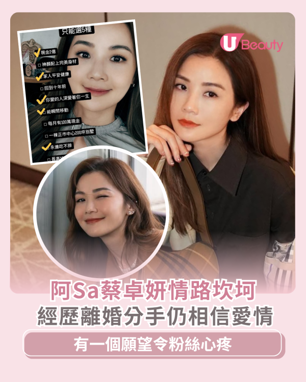 阿Sa蔡卓妍情路坎坷仍然相信愛情 經歷離婚分手後有一個願望令粉絲心疼