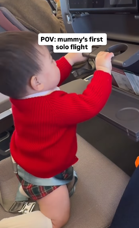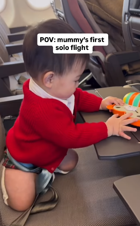 除了溫馨家庭照,更可以見到麥明詩囝囝活潑好動一面。早前,麥明詩釋出一段「一打一」帶兒子乘搭老公駕駛航班的珍貴片段。影片中,麥明詩囝囝在機艙內手舞足蹈,一臉好奇及興奮看窗外,展現出極強的好動體質。面對兒子的「無限精力」,麥明詩也忍不住幽默感嘆:「Luckily it was just for 2 hours… though it felt like 8😆」(幸好航程只有兩小時,但體感卻像飛了八小時!)。