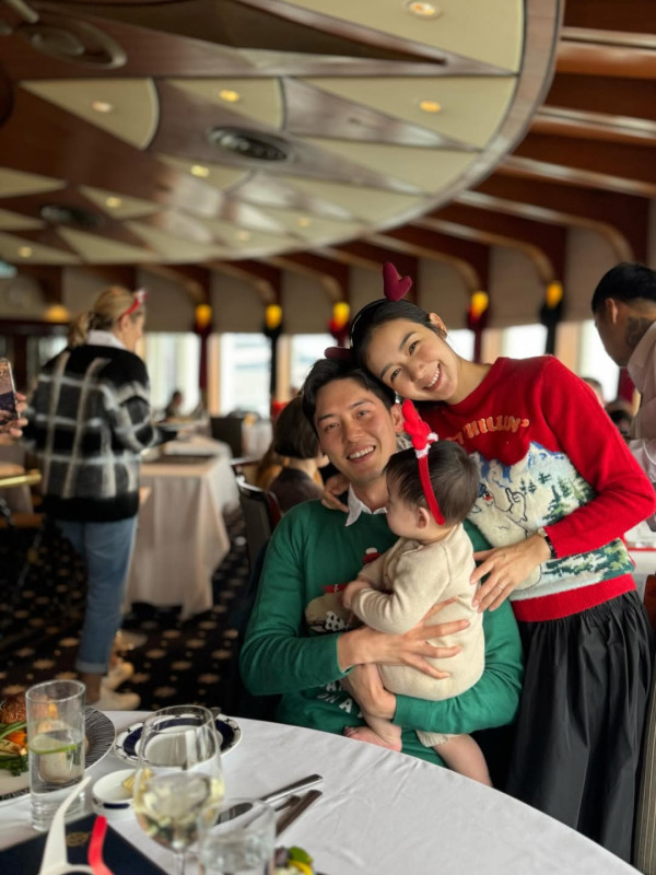 適逢聖誕節,麥明詩在社交平台上發佈多張溫馨家庭照片,更首度曝光兒子的側臉!照片中,一家人穿著充滿節慶氣息的聖誕裝在餐廳慶祝,兒子好奇心爆棚、四處張望的動作讓合照顯得有些「混亂」,卻更添真實的幸福感。最吸睛的是,從側臉可見,麥明詩兒子的長相已完美遺傳父母的大眼睛基因,加上肥嘟嘟的臉頰,讓網民紛紛淪陷直呼:「這側顏太療癒了!」