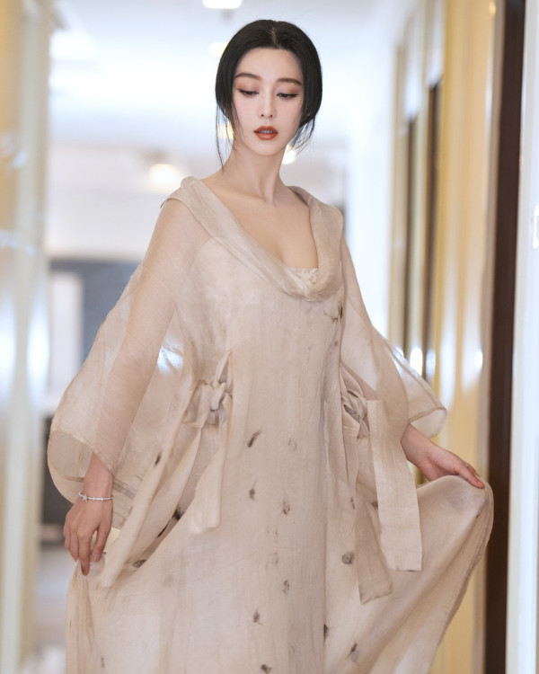 范冰冰身穿白色超Deep V晚裝,中門大開,流蘇設計若隱若現,呈現出超性感的噴血造型。雖然她在亮相時不慎疑露乳貼,但這沒有影響網民們對她的讚美。許多人稱讚她美出了新高度,氣場依舊如女王一般,更被網民稱讚為「女王氣場」、「穿了又好像沒穿」。