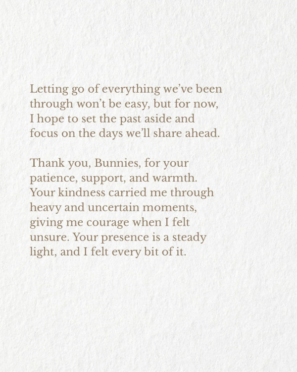 近日,Danielle 開設的個人IG短時間內衝破 97 萬追蹤人數,其中 THE BLACK LABEL 創意總監兼知名作曲家 Danny Chung 的關注更是引起網民熱議。Danielle 在(12日)透過直播現身,短短9分鐘的直播中,她以韓文與英文與粉絲互動,並數度哽咽忍淚,坦言:「直到最後一刻都想和成員們在一起」,更感性表示這段經歷讓她看待世界的角度變了,讓無數 Bunnies 痛心。