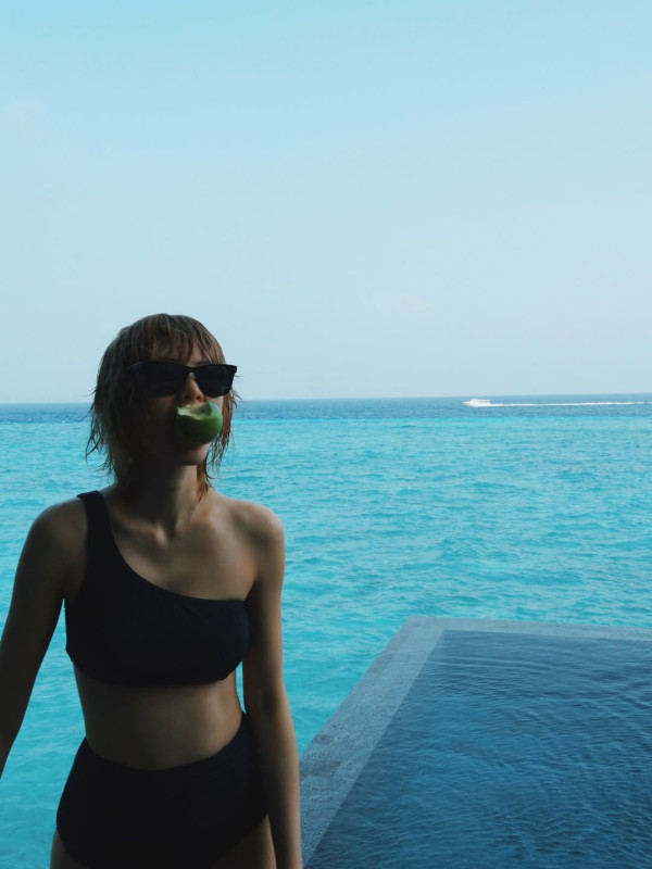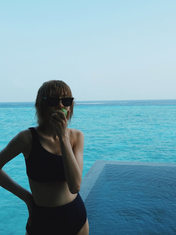 照片中,她沒有刻意擺出撩人姿勢,反而率性地咬著青蘋果入鏡,這番奇招引來好友洪嘉豪留言:「我都唔明點樣唔用手食蘋果」,兩人有趣的隔空對話讓網民爆笑。陳蕾又在相片中示範何謂「自我率性」的風格,她大方分享自己嘗試坐水泡失敗、狼狽落水的片段,對比起妹妹在鏡頭下的優雅Pose,陳蕾事後也自嘲:「完全玩唔明水泡,唯美呢啲嘢交返俾阿妹!」這種毫無架子的真實感獲網民大讚:「跌落水先係我識嘅蕾😞🙏🏻」。
