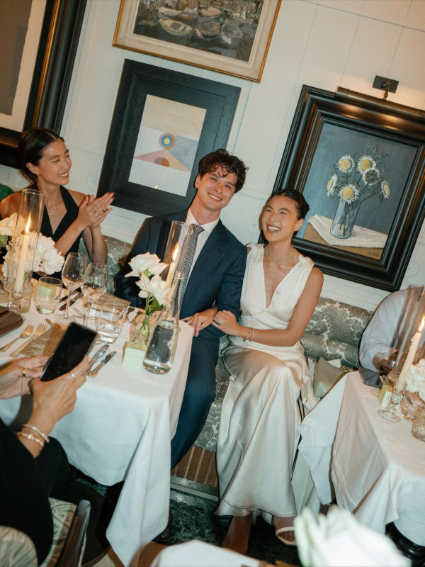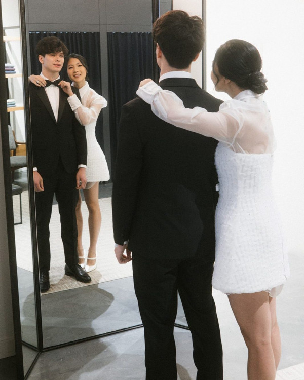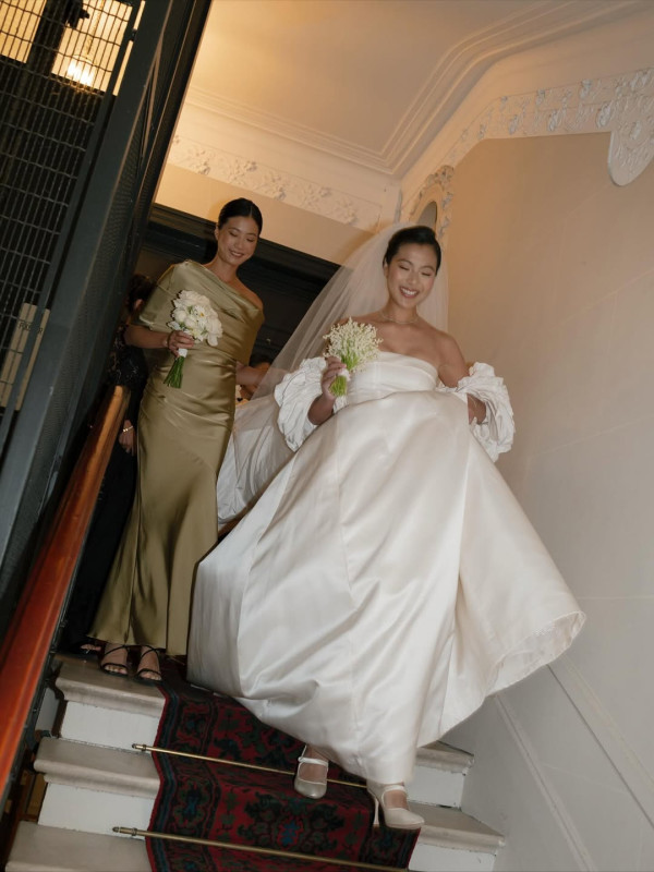 至於新人的服裝同樣受到關注,婚戒由Sean的叔叔、珠寶設計師 James de Givenchy 主理的品牌 Taffin 設計,新娘婚紗由韓裔設計師 Andrew Kwon 打造,搭配 Victoria Beckham 禮服與 Kimhekim 外套,完美融合歐美與韓系時尚。