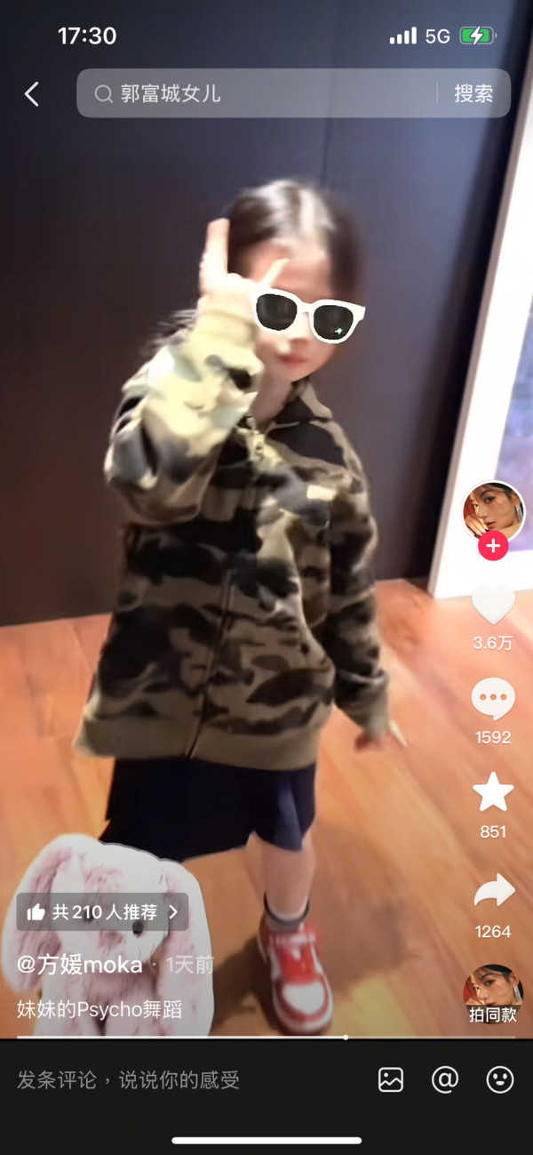 近日,方媛在社交平台上大展「舞台王者」接班人的強大氣勢!方媛先後分享了大女 Chantelle及二女 Charlotte的熱舞片段,兩姊妹挑戰韓國女團 BABYMONSTER 的神曲《PSYCHO》。影片中,年僅 8 歲的 Chantelle 動作乾脆俐落,展現出驚人的爆發力與平衡感;而6歲的 Charlotte 則擁有超齡的律動感,富有節奏感,舉手投足與眼神間充滿著自信。兩姊妹的動作流暢不生硬,就連 K-pop 舞步中的細微扭動也處理得極具神韻,完全承襲了爸爸郭富城那種「骨子裡的節奏感」,獲網民封為「天生的表演者」!