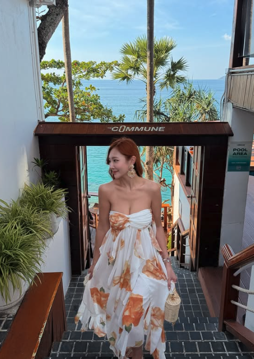 從梁允瑜的社交平台見到,近日她與好友飛到外地慶祝28歲生日。旅行期間她更特意拍攝一段短片,大曬今次旅程中所有服裝,露背、低胸及短版上衣樣樣齊,大騷fit爆體態,期間她換上一條白色抹胸配以橙色印花的沙灘裙,大擺Pose影相,盡顯S型完美曲線,俯瞰視覺更將她豐滿的上圍更顯澎湃,為粉絲送上視覺福利。不少網民看到後留言大讚:「索,靚,正」、「真係好靚女,而且身材管理得非常好」。
