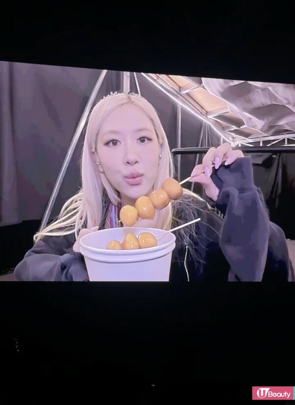 首場演出中,Rosé率先以街頭小食「雞蛋仔」打頭陣,她驚喜拎着雞蛋仔即場試味,可愛的吃相令全場粉絲瘋狂高呼「Cute到爆」。