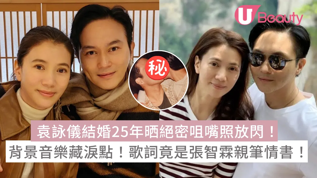 為慶祝結婚25週年,袁詠儀在社交平台發布一段超感人的影片,並寫著:「一屋兩人,三餐四季,二十五年,正是青春的模樣,餘生請你繼續溫柔有趣。」短短幾句已經甜到漏!片段記錄了兩人從年輕拍拖青澀的模樣,到後來結婚生子的溫馨時光。片中罕有曝光不少擁抱、深情對望及咀嘴的親密畫面,每張照片都流露著滿滿的愛意!有網民更發現片段的背景音樂並非隨意挑選,歌詞其實是張智霖在 2016年參加綜藝《快樂大本營》時,親手寫給太太的情書!將老公當年的情話變成今日的配樂,這份心思相當浪漫。