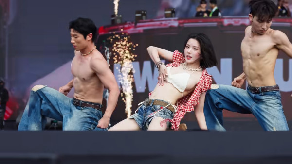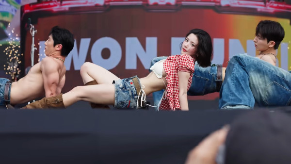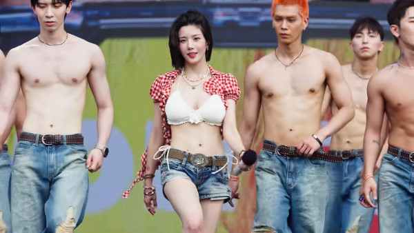 前韓國女團IZ*ONE權恩妃現年29歲,早在2023年在韓國夏季最具代表性的潑水音樂節WATETRBOMB以火辣比堅尼造型一度人氣爆紅,更獲封「水彈女神」。今年她時隔3年再度回歸這個舞台,她以西部牛仔為靈感,上身為紅色格仔短身外衫,內裡搭配白色比堅尼,再配襯牛仔短褲造型,集齊可愛與性感於一身。
