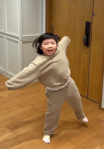 當中Lucy更展現了令人讚嘆的超齡架勢,她不僅記熟了所有複雜動作,更精準捕捉每一個節奏拍子,這對7歲小朋友來說,是超越同齡的挑戰。事實上,Lucy的成功並非偶然。Sophia經常在社交平台分享她的練習片段,影片中的Lucy每一個動作都絕不馬虎,甚至反覆練習細節,網民看後紛紛留言感嘆:「Lucy真係好有天份呀!」