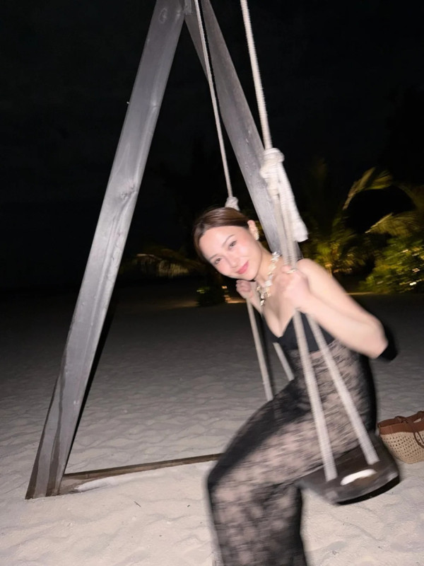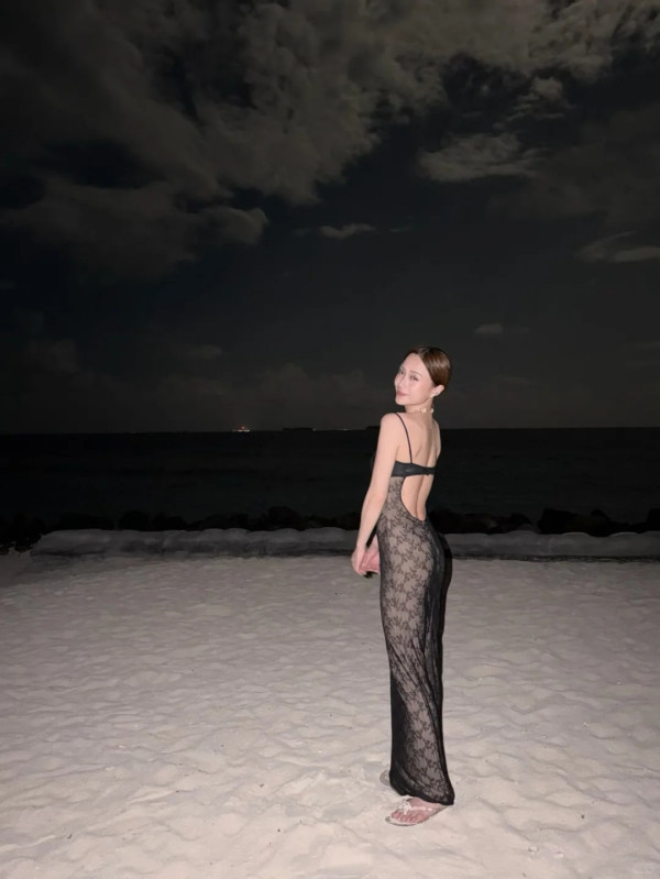 近日,邵初在社交平台分享一輯震撼視覺的沙灘美照。照片中,她換上一襲黑色貼身吊帶低胸蕾絲長裙,胸前採取「中門大開」的大膽設計,將豐滿上圍與深邃事業線大方展露。隨著鏡頭一轉,大片白滑玉背更是一覽無遺,令人目不暇給。最令人驚嘆的是,裙擺質料在光影交錯下呈現猶如「透視」般的視覺特效,將她的S型玲瓏曲線勾勒得若隱若現。她更擺著誘人的眼神和姿勢,舉手投足流露出的輕熟女人味!