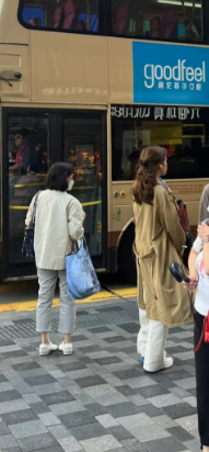 從網民拍攝的照片見到身穿卡其色長外套的Kelly,配上白色闊褲以及價值接近2000元的潮牌手袋,一邊拎起手機邊行邊講,樣子甚為嚴肅。不過網民竟然錯重點,因為站在Kelly身旁、上牛仔套裝的女途人,側面激似「菊姐」關菊英,紛紛笑言要看了全文才得知版主想表達偶遇Kelly,意外搶鏡。